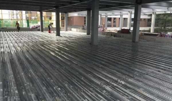 铺设镀锌成型钢楼板,再绑扎钢筋网2层,然后浇筑混凝土。铺设水泥压力板部分要注意楼板两边搭接要搭接在钢龙骨的主梁上,不要搭接在空处。铺板时注意板与板之间最好留3mm的伸缩缝,使用防水伸缩建筑胶作为填缝剂。使用自攻螺丝钉固定,使用自攻螺丝钉将楼板固定在钢龙骨上。